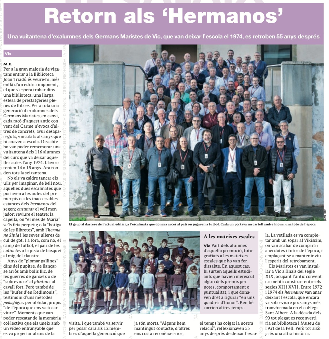 Estem molt agraïts a un grup d’exalumnes dels Germans Maristes de Vic, els quals han fet una trobada 55 anys després de deixar l’escola i han decidit lliurar els diners sobrants de l’organització a Osonament. Us deixem la notícia que… Continue Reading →