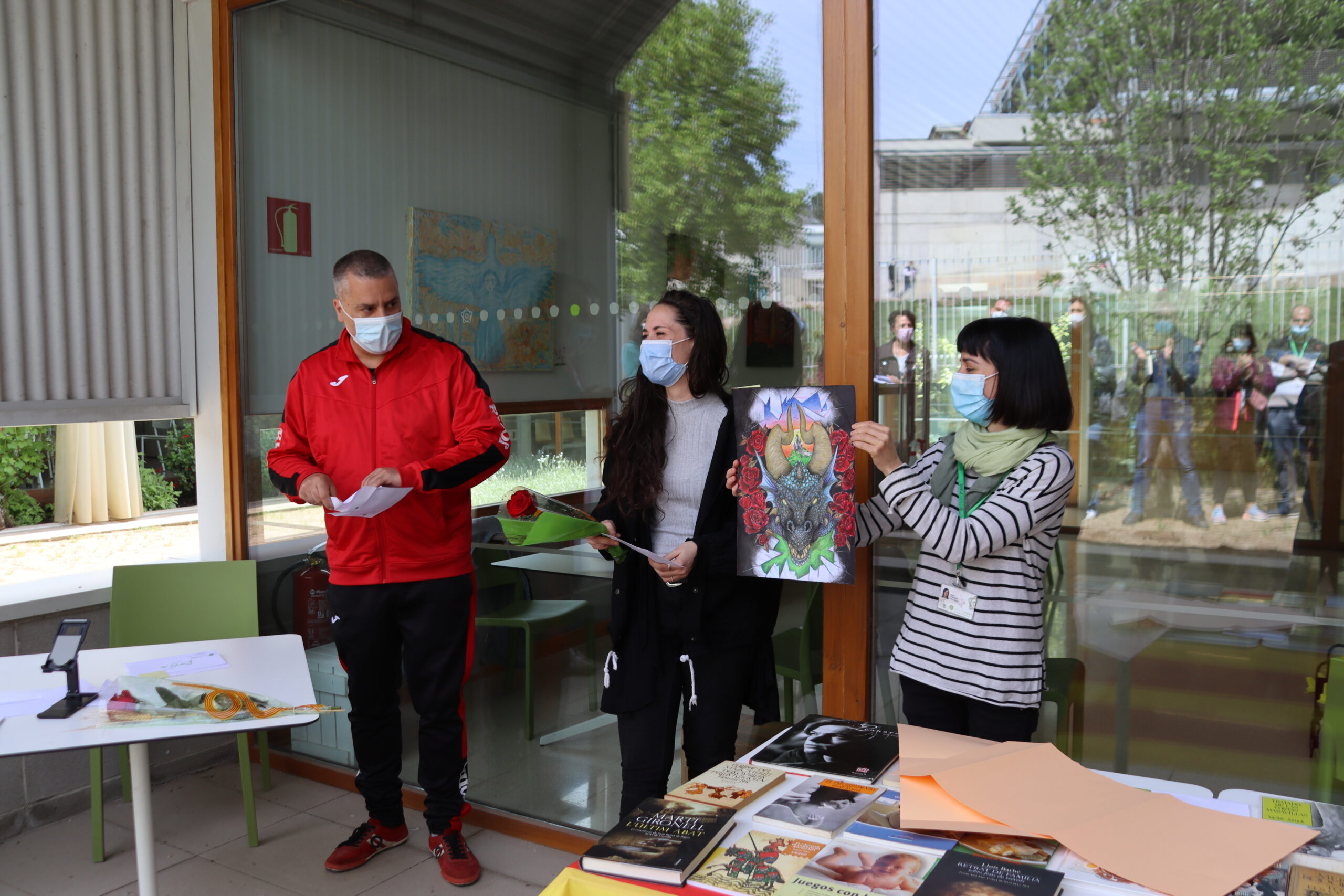 En el marc de la Diada de Sant Jordi, avui hem fet el lliurament de premis de les obres guanyadores dels Jocs Florals d’Osonament. L’acte ha començat amb un intercanvi de llibres i amb la presentació a càrrec del seu autor, Adrià Ballús, del llibre d’assaig i poesia Descosir la llengua per cosir la vida. L’Adrià, a més, ha amenitzat la festa amb dues cançons acompanyades de guitarra basades en escrits que figuren al llibre.