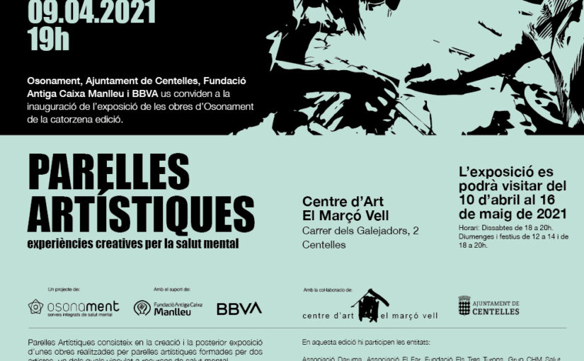 El divendres 9 d’abril a les 19h, inaugurem l’exposició de les obres de la 14a edició de Parelles Artístiques realitzades per parelles d’Osonament al Centre d’Art El Marçó Vell de Centelles. L’acte es farà a l’aire lliure i després es podrà entrar a l’exposició per grups.