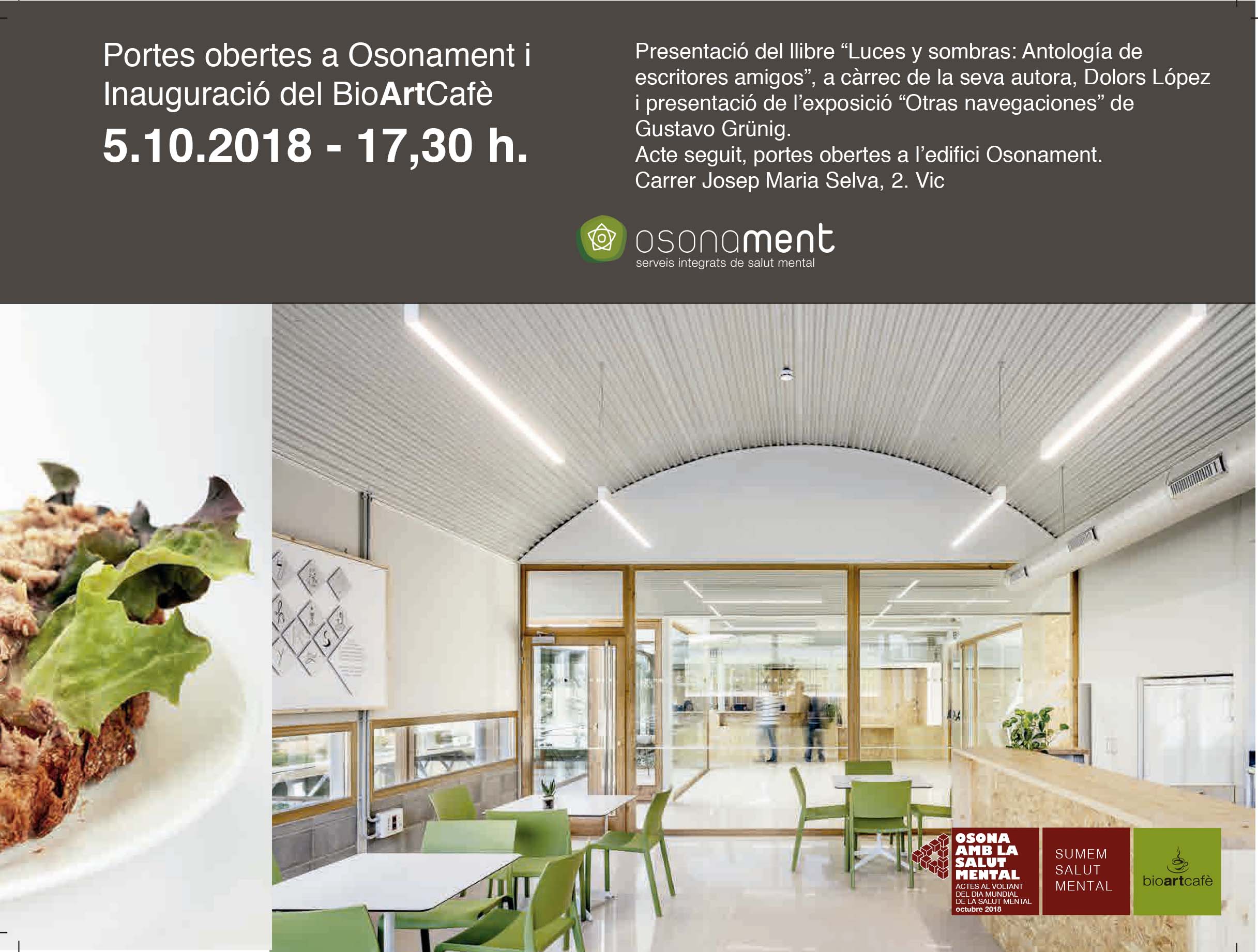 El proper divendres 5 d’octubre, a partir de les 17.30h, es farà jornada de portes obertes a la seu central d’Osonament i s’inaugurarà el BioArtCafè. L’acte d’inauguració comptarà amb la presentació del llibre “Antologia de escritores amigos”, a càrrec de… Continue Reading →