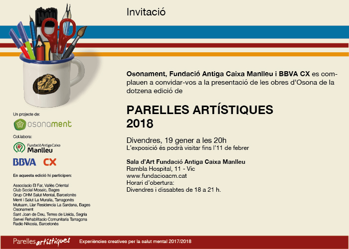 Cada any, quan arriba el mes de gener, tenim el desig i la il·lusió de contemplar el resultat del procés creatiu de les noves parelles participants en el projecte de Parelles Artístiques. Un treball original que presentem aquest divendres, a… Continue Reading →