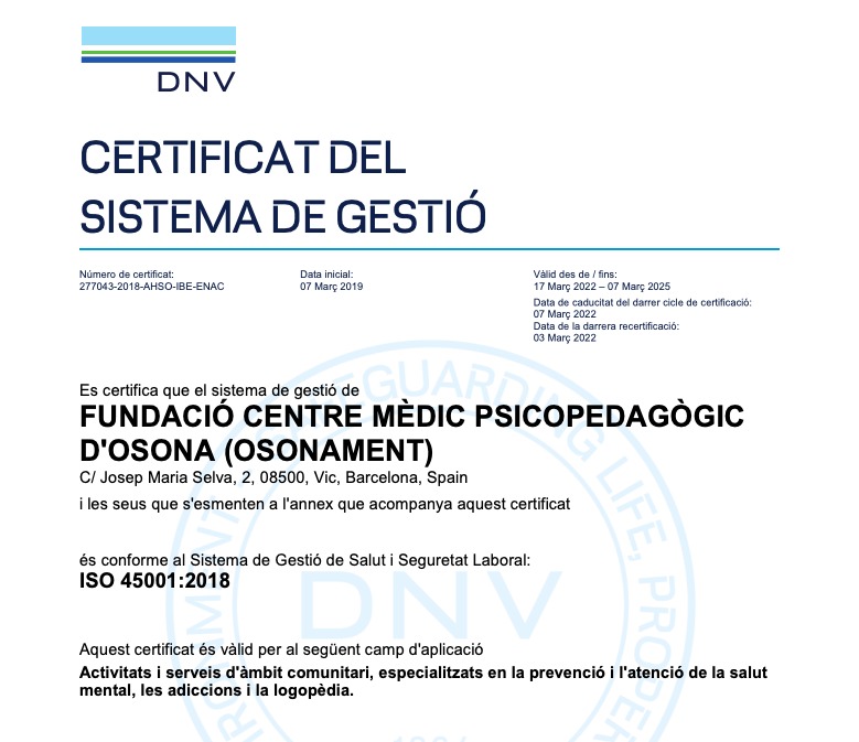 Osonament ha renovat la certificació ISO 45001:2018, una norma internacional que defineix els requisits per assegurar la salut i seguretat en el treball. La norma té per objectiu protegir les persones treballadores i les visitants a les instal·lacions d’Osonament tant… Continue Reading →